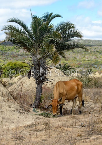 Keywords: 2014, Murundu, Palmeira Arecaceae, Flora, Natureza, Vaca, Syagrus coronata, Bahia, Seabra, Semiarido, Caatinga, Seca, Sertao, Licuri, Comendo, Folha, Vertical |