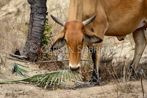 Título: Vaca comendo folha palmeira Licuri |
