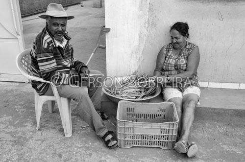 Keywords: 2014, Feijao de Corda Feijao-de-corda, Cocho do Malheiro, Horizontal, Bahia, Seabra, Povoado, Casal, Mulher, Homem, Descascando, Preto e Branco |