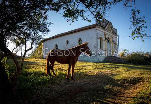 Keywords: 2014, Igreja, Paisagem, Nascer do sol, Alvorada, Arvore, Natureza, Minas Gerais, Araxa, Estancia Hidromineral do Barreiro, Horizontal, Cavalo |