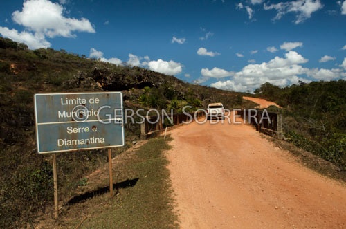 Keywords: Minas Gerais, Historico, Estrada Real, Caminho dos Diamantes, Horizontal, Diamantina, 2014, Divisa, Placa, Sinalizaçao, Rio Jequitinhonha, Ponte, Caminhonete |