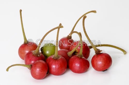 Keywords: 2015, Fruit, Horizontal, Parana, Londrina, Flora, Nature, Tree, Muntingia calabura, Jamaican cherry, White background |