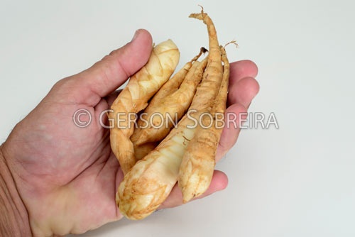 Keywords: Horizontal, Raiz, Rizoma, Parana, Londrina, 2015, Araruta, Maranta arundinacea, Fundo branco, Alimento |