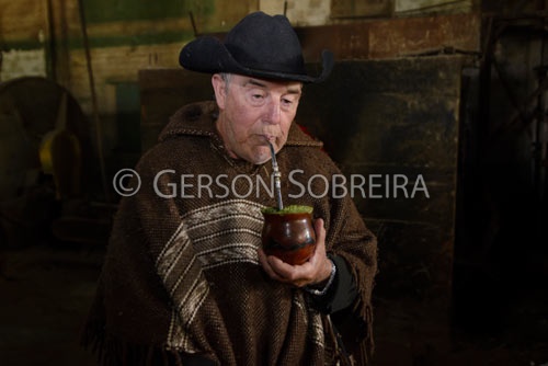 Keywords: 2015, Frio, Homem, Idoso, Poncho, Pala, Pinhao, Horizontal, Parana, Ervateira, Erva-mate Erva mate, Chimarrao, Mateando |