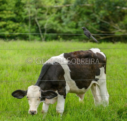 Keywords: Parana, Fauna, Ave, Anu-preto Anu preto, Crotophaga ani, Bezerro, Girolando, Gado Pecuaria, Bovino, Grandes Rios, 2015, Quadrado |