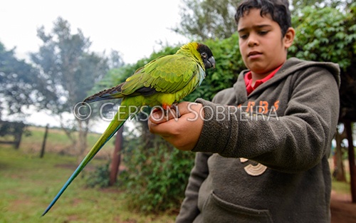 Keywords: 2015, Menino Criança, Paraguay Paraguai, Horqueta, Horizontal, Periquito, Fauna, Periquito-de-cabeça-preta, Aratinga nenday, Passaro, Ave |