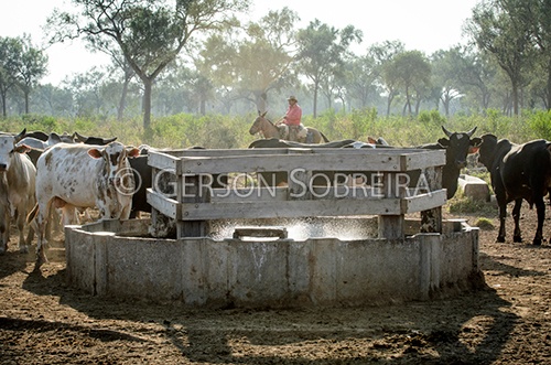 Keywords: 2015, Vaqueiro Peao Cowboy, Chaco, Paraguay Paraguai, Teniente Pico, Horizontal, Gado Pecuaria, Bovino, Bebedouro, Pileta, Agua |