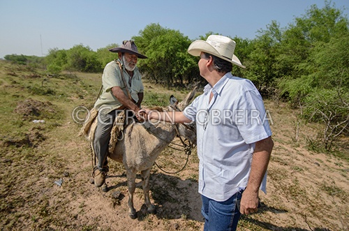 Keywords: 2015, Cumprimento, Burro, Teodoro Cardena, Chaco, Paraguay Paraguai, Homem, Idoso, Vaqueiro Peao Cowboy, Pozo Colorado, Horizontal |