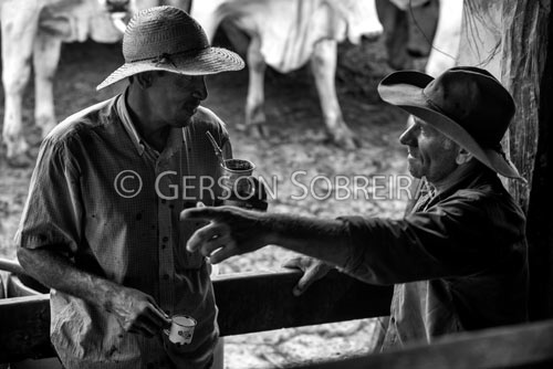 Keywords: 2016, Preto e Branco, Erva-mate Erva mate, Terere, Lida campeira, Horizontal, Mato Grosso do Sul, Terenos, Vaqueiro Peao Cowboy, Curral, Conversa, Conversando |