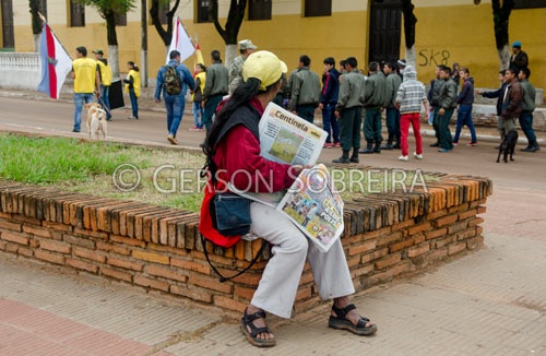Keywords: 2016, Paraguay Paraguai, Concepcion, Horizontal, Vendedor, Ambulante, Mulher, Vendedora, Jornal, Jornaleiro, Rua |