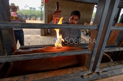 Keywords: 2016, Brete, Tatuagem, Fogo, Ferro de marcar, Curral, Gado Pecuaria, Bovino, Chaco, Paraguay Paraguai, Mariscal Estigarribia, Tatuando, Marcando, Vaqueiro Peao Cowboy, Horizontal |