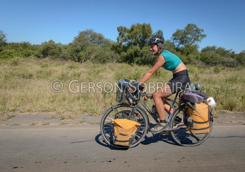Keywords: 2016, Woman, Biker, Bike, Highway, Ruta Transchaco, Transport, Road, Horizontal, Paraguay, Tourism, Cyclism, Bike |