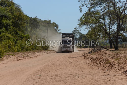 Título: Caminhão boiadeiro em estrada pantaneira |
