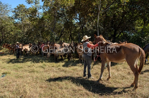 Keywords: 2016, Burro, Tropa, Pantaneiro, Comitiva Pantaneira, Mato Grosso do Sul, Pantanal, Rio Verde, Horizontal, Vaqueiro Peao Cowboy, Boiadeiro, Encilhar, Arrear, Muar |
