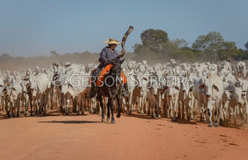 Keywords: 2016, Ponteiro, Tocando, Conduzindo, Conduçao, Pantaneiro, Comitiva Pantaneira, Vacada, Mato Grosso do Sul, Pantanal, Rio Verde, Horizontal, Boiada, Rebanho, Estrada, Vaqueiro Peao Cowboy, Boiadeiro, Gado Pecuaria, Bovino, Berrante |