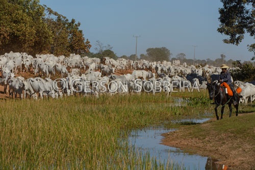 Keywords: 2016, Agua, Vazante, Aguada, Tocando, Conduzindo, Conduçao, Pantaneiro, Comitiva Pantaneira, Vacada, Mato Grosso do Sul, Pantanal, Rio Verde, Horizontal, Boiada, Rebanho, Estrada, Vaqueiro Peao Cowboy, Boiadeiro, Gado Pecuaria, Bovino |