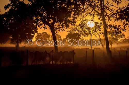 Keywords: 2016, Landscape, Tree, Horizontal, Brahman, Goias, Jussara, Back light Backlight, Sunset, Cerrado, Twilight, Rural, Cattle Livestock |