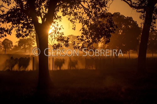 Keywords: 2016, Landscape, Tree, Horizontal, Brahman, Goias, Jussara, Back light Backlight, Sunset, Cerrado, Twilight, Rural, Cattle Livestock |