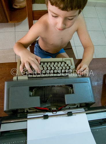 Londrina, Datilografia, Brincando, Brincadeira, Vertical, Parana, 2015, Menino Criança, Niko, Maquina de escrever