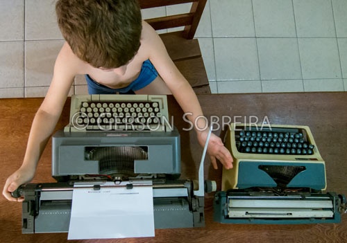 Londrina, Horizontal, Maquina de escrever, Niko, Menino Criança, 2015, Parana, Brincadeira, Brincando, Datilografia