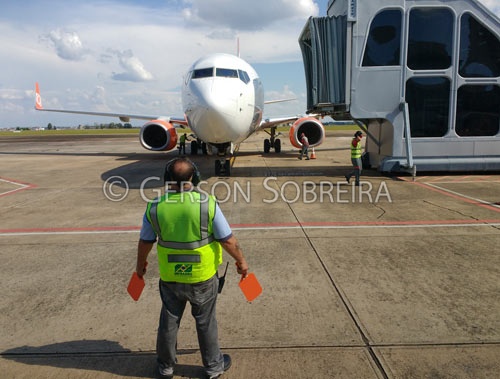 Keywords: Londrina, Aereo, Transporte, Aeroporto, Urbano, Horizontal, Parana, 2016, Aviao, Aeronave, Sinalizador, Homem, Taxiando |