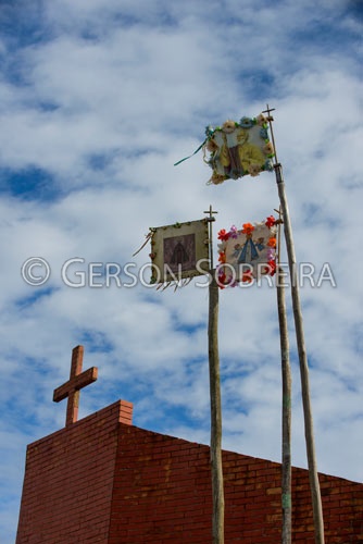 Keywords: Parana, Bandeira, Ornamento, Festividade, Fe, Santo, Mastro, Vertical, Rural, 2017, Ortigueira, Briolandia, Igreja |
