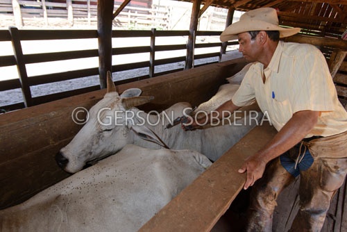 Keywords: Parana, Nelore, Santa Fe, 2017, Gado Pecuaria, Bovino, Vaca, Femea, Vaqueiro Peao Cowboy, Curral, Vacina, Vacinaçao, Pistola, Horizontal |