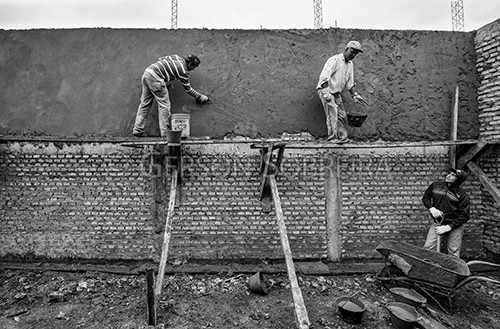 Paraguay Paraguai, Preto e Branco, Pedreiro, Galpao, Construçao, Horqueta, 2017, Horizontal