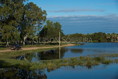 Paraguay Paraguai, Caminhonete, Estrada, Lagoa, Umido, Naranjito, Horizontal, 2017, Chaco