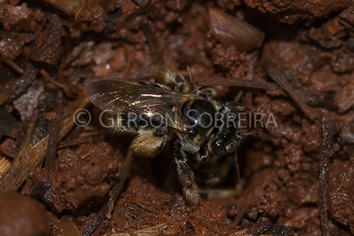 Keywords: Parana, Inseto, Fauna, Horizontal, Londrina, 2017, Abelha, Guiruçu, Schwarziana quadripunctata, Mel-do-Chao, Chao |