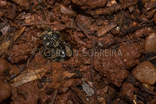 Keywords: Parana, Inseto, Fauna, Horizontal, Londrina, 2017, Abelha, Guiruçu, Schwarziana quadripunctata, Mel-do-Chao, Chao |