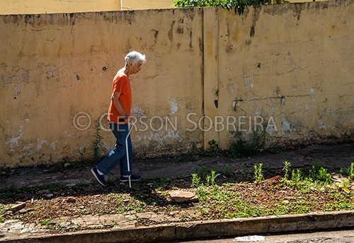 Keywords: Parana, Bengala, 2017, Londrina, Horizontal, Idosa, Mulher, Ruth Nunes Sobreira, Calçada, Caminhando, Buraco, Rua, Mobilidade |