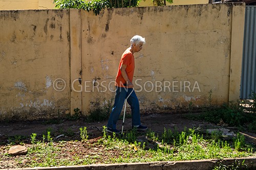 Keywords: Parana, Bengal, 2017, Londrina, Horizontal, Old aged woman, Woman, Ruth Nunes Sobreira, Sidewalk, Hiking, Hole, Street, Mobility |