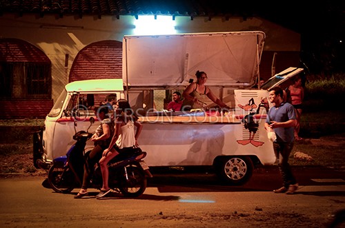 Paraguay Paraguai, Concepcion, 2017, Horizontal, Comercio, Noite, Kombi, Lanche, Food Truck, Rua