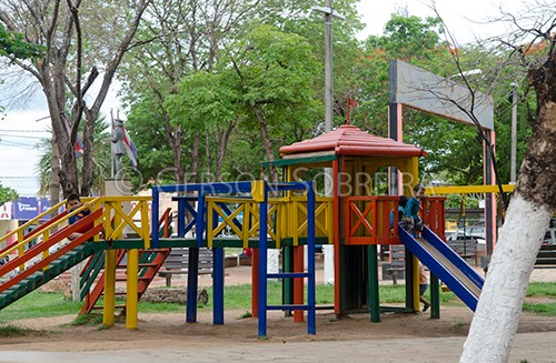 Paraguay Paraguai, Horizontal, 2017, Concepcion, Urbano, Praça, Menino Criança, Playground, Brinquedo