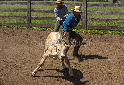 Keywords: Vaqueiro Peao Cowboy, Aguero-Cue, 2018, Horqueta, Paraguay Paraguai, Curral, Gado Pecuaria, Bovino, Bezerro, Nelore, Horizontal, Curando, Imobilizando |