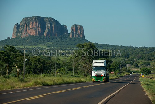 Keywords: Horizontal, Paisagem, Yby Yau, Inselberg, Cerro Memby, Rodovia, Caminhao, Estrada, Transporte, 2018, Paraguay Paraguai |