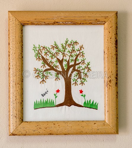 Título: Baru - Bordado com moldura de buriti |
