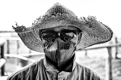Keywords: 2018, Mascara, EPI Equipamento de Proteçao Individual, Vaqueiro Peao Cowboy, Preto e Branco, Nova Crixas, Goias, Horizontal |