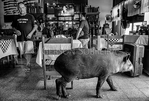 Keywords: 2018, Preto e Branco, Chaco, Paraguay Paraguai, Fauna, Anta, Restaurante, Tapirus terrestris, Domesticado |