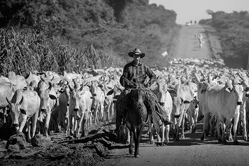 Keywords: 2018, Preto e Branco, Tocando, Conduçao, Conduzindo, Vaqueiro Peao Cowboy, Gado Pecuaria, Bovino, Transumancia, Canabrava do Norte, Mato Grosso, Horizontal, Estrada, Chao, Rodovia, Transporte  |