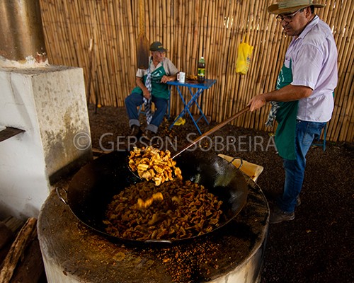 Keywords: 2019, Tacho, Torresmo, Encontro das Bandeiras, Sao Paulo, Palmital, Festividade, Festejo, Santos Reis, Folia de Reis, Horizontal, Fogao a lenha, Comida, Cozinhando |