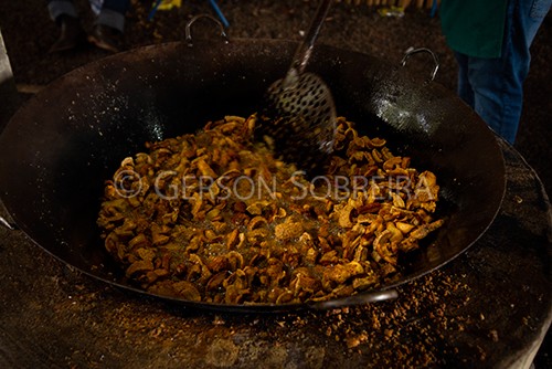Keywords: 2019, Tacho, Torresmo, Cozinhando, Comida, Fogao a lenha, Horizontal, Folia de Reis, Santos Reis, Festejo, Festividade, Palmital, Sao Paulo, Encontro das Bandeiras |