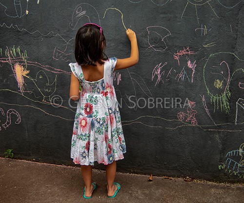 2019, Desenhando, Giz, Menina Criança, Brincadeira, Desenho, Muro, Horizontal, Londrina, Parana