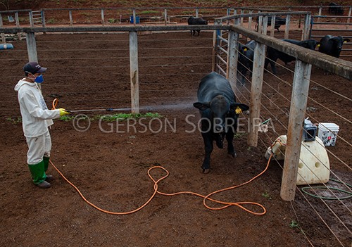Keywords: 2019, Parana, Londrina, Horizontal, Gado Pecuaria, Bovino, Brangus, Curral, Carrapato, Pulverizaçao, Pulverizador, EPI Equipamento de Proteçao Individual, Veneno, Carrapaticida |