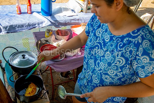 Keywords: 2019, Cozinheira, Cozinha, Preparo, Fritura, Cachapa, Comida, Alimento, Alimentaçao Nutriçao, Horizontal, Comercio, Feira, Bela Vista de Goias |