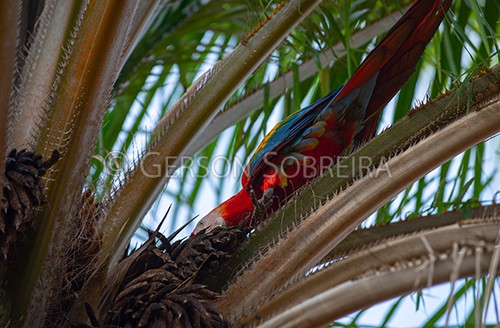 Keywords: 2019, Comendo, Elaeis guineensis, Dendezeiro, Palmeira Dende, Ara chloropterus, Arara-vermelha Arara vermelha, Passaro, Ave, Fauna, Horizontal, Santana do Araguaia, Para |