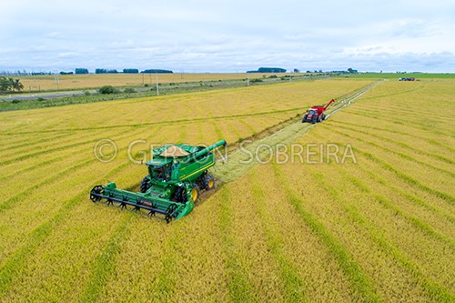 Keywords: Horizontal, Pampa, Aerial view, Rio Grande do Sul, 2020, Rice, Agriculture, Quarai, Harvest, Harvester  |