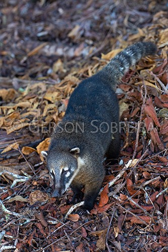 2020, Sao Paulo, Paranapanema, Fauna, Quati-de-cauda-anelada, Quati, Nasua nasua, Vertical