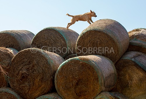 Keywords: 2020, Saltando, Horizontal, Mato Grosso do Sul, Brasilandia, Cao Cachorro, Rolo, Feno, Pilha |